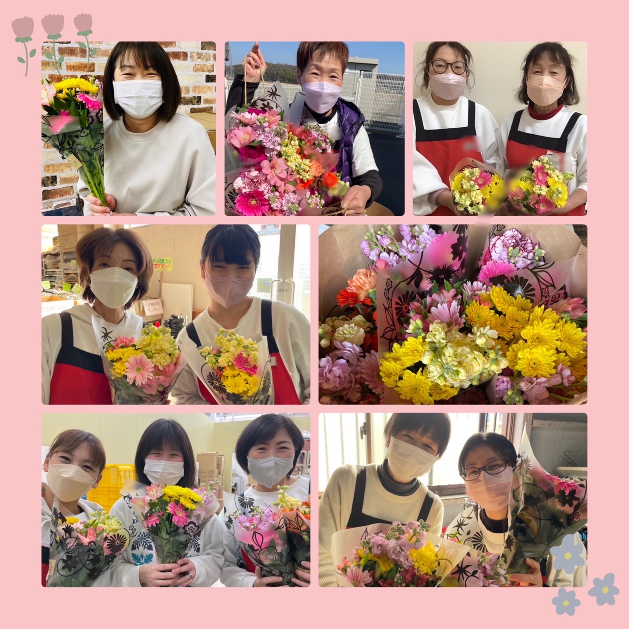 綺麗な花束の贈り物に みんな自然と笑顔満開になりました