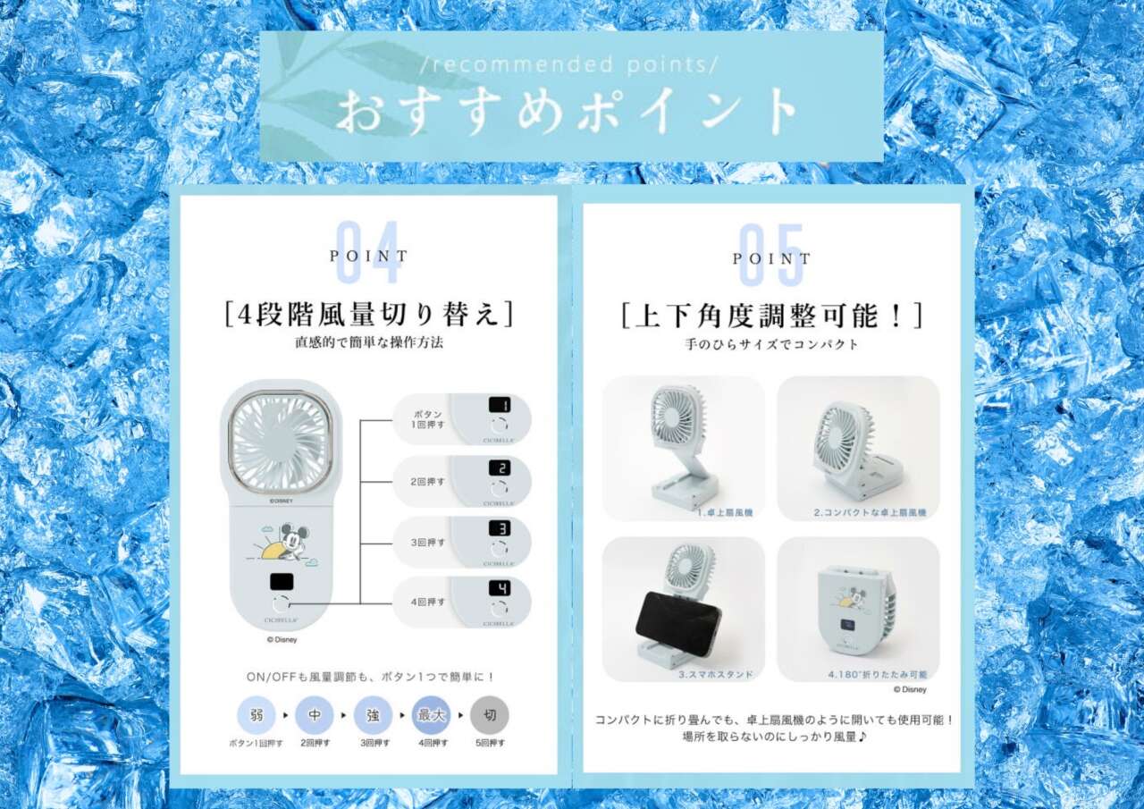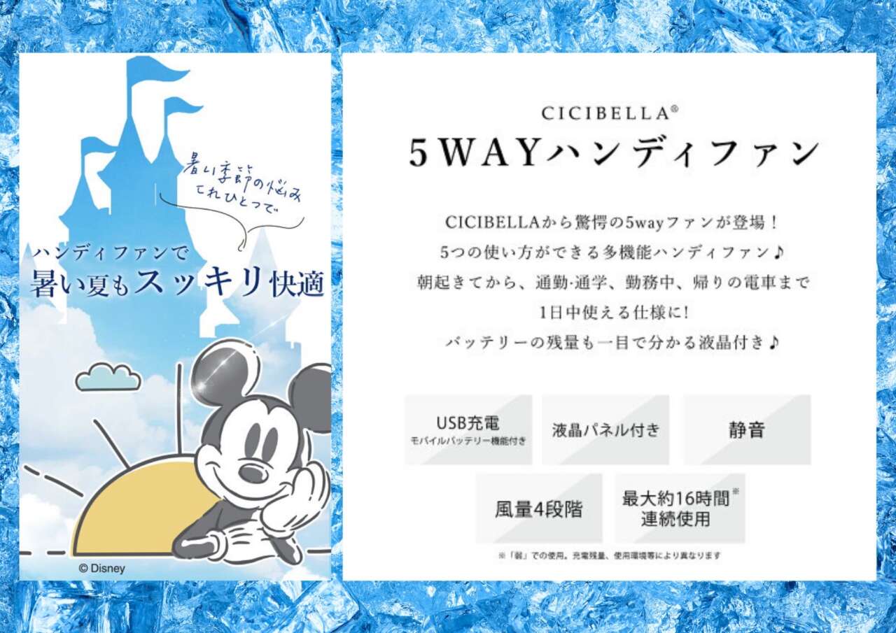 おしゃれで人気のCICIBELLAシリーズから、キュートなディズニーデザインの携帯扇風機が入荷しました!