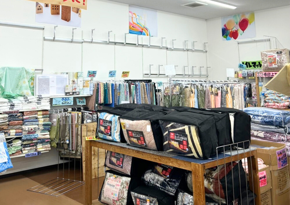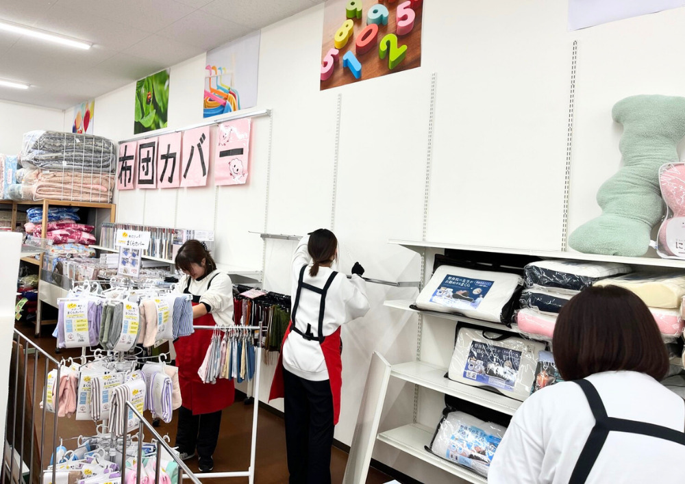 使う用途でアイテムを固めた方がお買い物してもらいやすいかな?と、インテリア売場にスリッパを持ってきたり、寝具売場の隣にパジャマを置いたり…