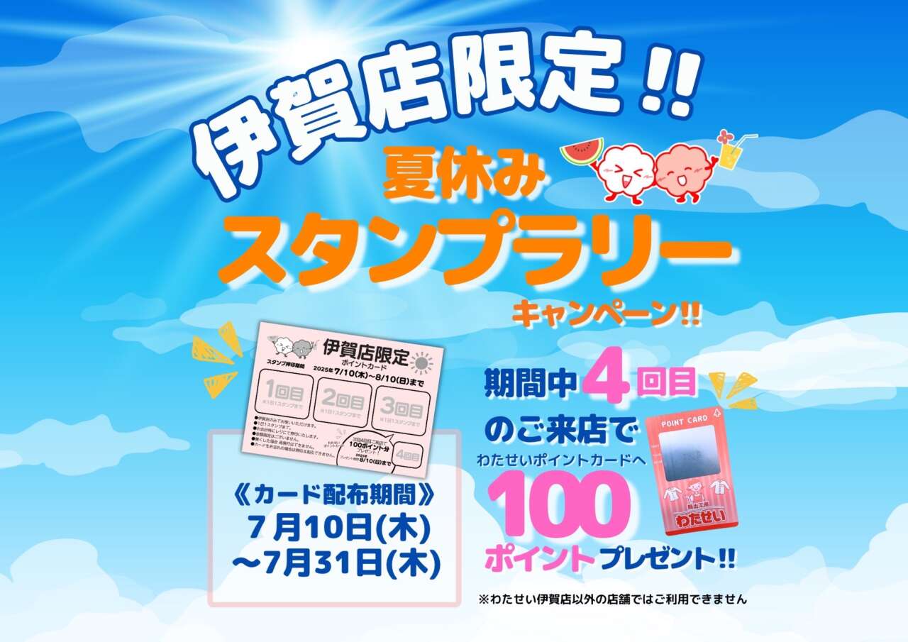 →スタンプが4個貯まると わたせいポイントカードへ【100ポイント】プレゼント!