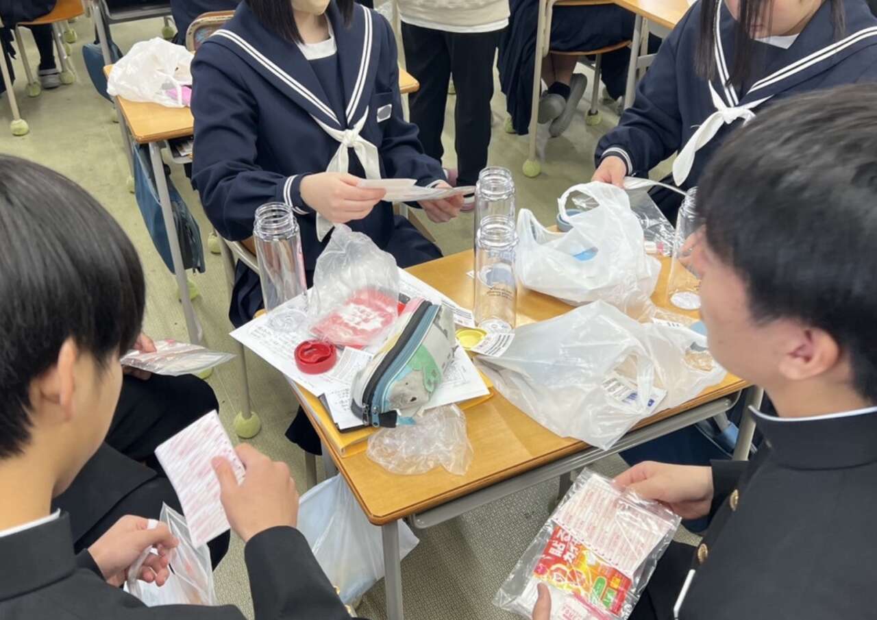 生徒さんたちは班に分かれ、『非常用マグボトル』を作成しました