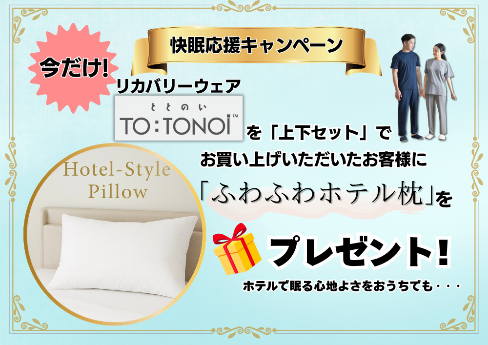 『上下セット』でこ購入いただいたお客様にはふわふわホテルタイプ枕をプレゼント!